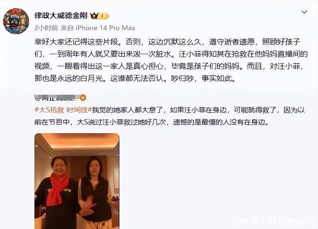 事件起因于大S离世后的家庭纷争,大S于2025年2月在日本因感染流感引发并发症离世,当时她正与具俊晔在当地度假。离世后,她的骨灰被运回台湾安葬于金宝山墓园。她的具俊晔在离世后多次前往墓地,并在媒体上公开表达哀思。然而,这些行为引发了汪小菲家庭一方的律师多次公开发文,指出这些举动并非单纯悼念,而是与韩国综艺节目相关联,旨在通过节目内容获取关注。 张兰的律师在2026年2月初连续发布多条动态,针对大S离世一周年纪念活动后的情况进行回应。律师首先提到,大S离世前曾通过遗嘱表达希望家庭成员放下过去恩怨,共同照顾子女的意愿。但在实际执行中,这一意愿未能得到全面遵守。律师指出,汪小菲一方自离世消息公布后,便选择保持低调,避免公开讨论相关事宜,以尊重逝者意愿。然而,具俊晔一方在周年纪念期间参与韩国综艺节目,节目中包含墓地拜访的镜头,这被视为违背了逝者希望家庭和睦的初衷。 律师进一步透露,具俊晔频繁前往墓地的行为,与韩国KBS电视台的一档综艺特辑有关。该节目组在离世后不久便开始跟拍具俊晔的日常活动,包括墓地祭拜过程。这些内容被纳入节目,用于塑造具俊晔的形象,并在韩国播出后提升其知名度。律师强调,这种通过节目消费逝者离世事件的做法,实质上将私人哀悼转化为公众表演,忽略了逝者遗愿中关于保护子女免受舆论干扰的部分。节目播出后,具俊晔在韩国获得更多工作机会,这被律师视为行为背后的动机之一。 在周年纪念仪式上,逝者的母亲和妹妹组织了雕像揭幕活动,具俊晔出席并在现场表现出哀伤情绪。然而,律师在动态中质疑这一仪式的必要性,指出逝者生前偏好简单处理身后事,而非通过公开活动延续家庭矛盾。律师还提到,汪小菲一方得知离世消息后迅速结束工作,返回台湾处理相关事宜,但未参与周年活动,以避免加剧家庭对立。这与具俊晔通过节目公开墓地细节的做法形成对比,律师认为后者更注重个人曝光而非家庭隐私。 逝者离世后,其财产分配成为焦点。具俊晔于2025年2月6日公开发文,表示将继承权让渡给逝者的母亲,强调财产是为保护家人而积累的成果。这一决定被部分媒体解读为处理遗产纷争的举措,但律师在后续动态中指出,遗产分配需依法进行,子女作为继承人应优先考虑他们的权益。具俊晔虽表示通过法律保护子女,但律师认为实际行动中未充分体现逝者遗愿中关于子女教育的部分,导致遗愿在这一方面难以实现最后,在2026年1月底,具俊晔表示将所持有遗产转到大S孩子名下。 此外,律师提到大S离世前曾多次因家庭纠纷登上新闻头条,这些事件涉及汪小菲家庭与具俊晔间的矛盾。具俊晔参与的韩国节目中,详细描述了离世过程,包括感染流感后泡温泉加重病情的情节。这被律师视为重新挑起旧事,违背逝者希望家庭和睦的遗愿。节目内容还包括具俊晔在墓前摆放早餐和朗读情书的片段,律师指出这些举动经节目剪辑后,更像是预设脚本而非自然表达。 律师的动态还涉及子女监护权问题。逝者离世后,根据台湾法律,子女监护权移转至汪小菲一方。具俊晔虽表示会保护子女,但律师指出,在实际安排中,子女未能充分参与周年纪念活动,这与逝者遗愿中强调照顾子女成长的部分不符。律师强调,汪小菲一方在离世后第一时间表达哀悼,并通过私下渠道处理子女事宜,避免公开争执。然而,具俊晔通过节目公开家庭细节,被视为潜在干扰子女正常生活的因素。