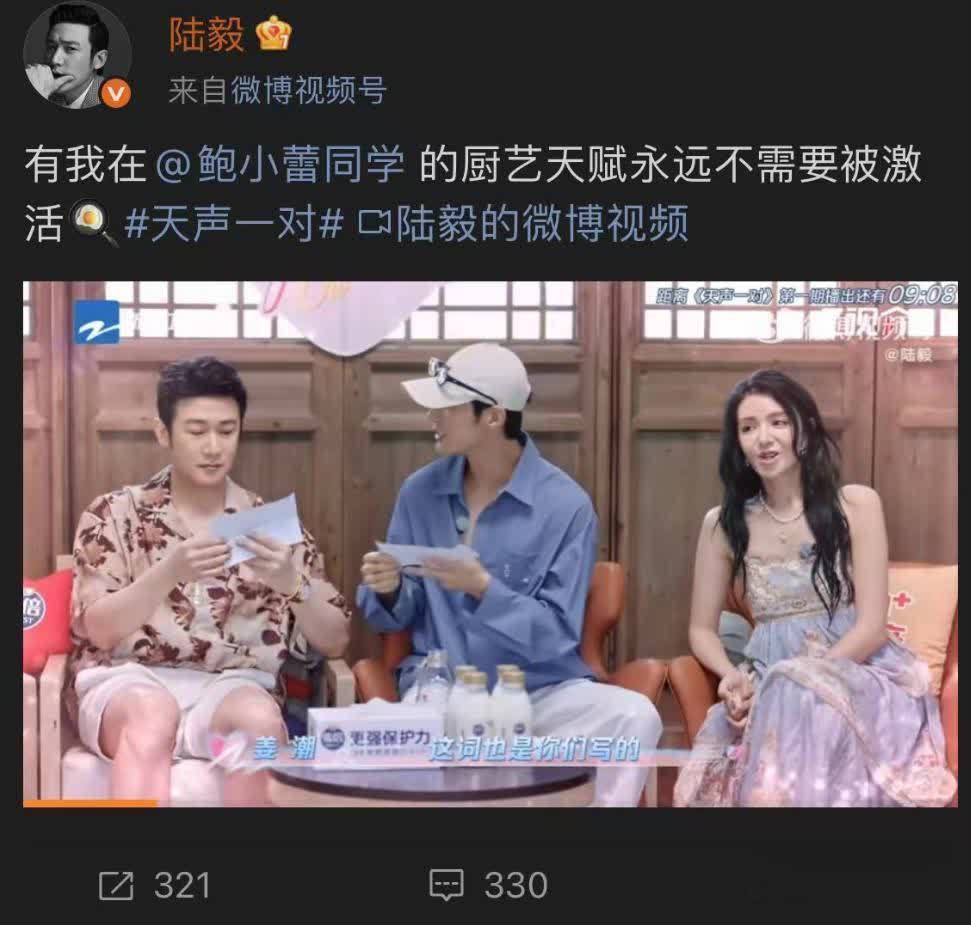 9月6日,陆毅和鲍蕾都在各自的社交媒体上放出了,在《天声一对》这档综艺“先导片”中,两人的甜蜜相处日常。