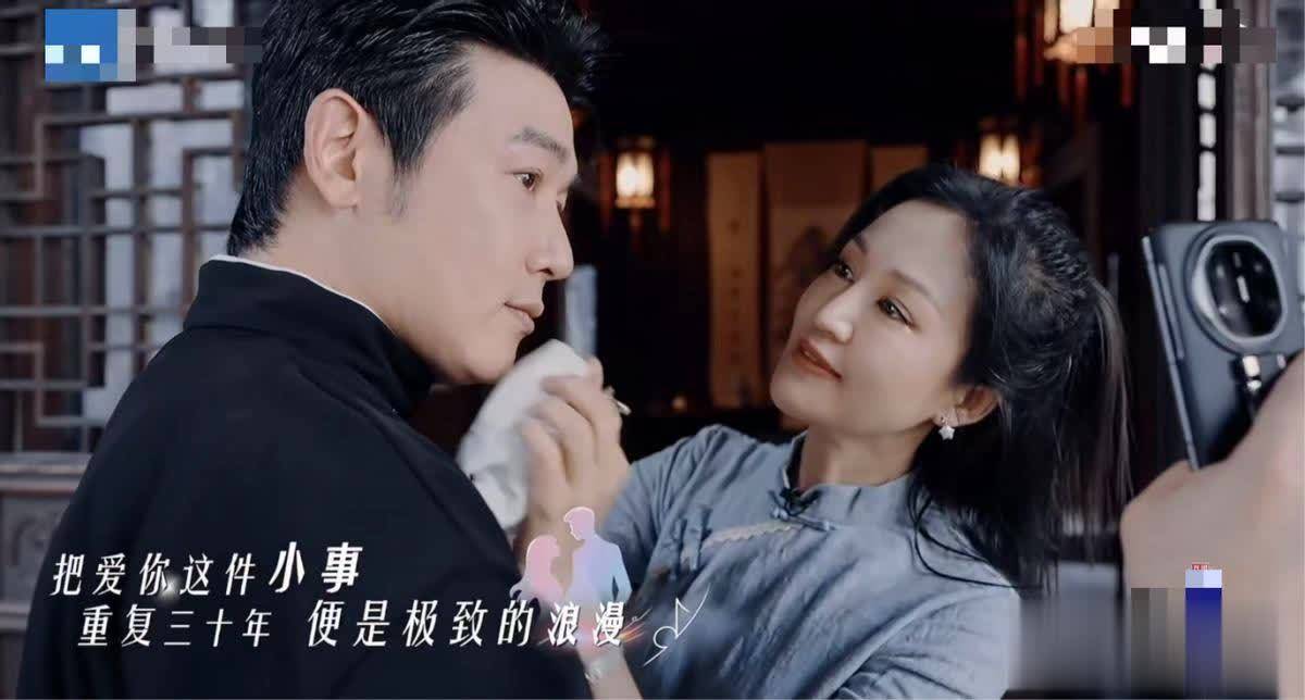 在陆毅因为高温天气脸上不停的出汗时,鲍蕾会特别贴心的拿出纸巾为他吸汗。